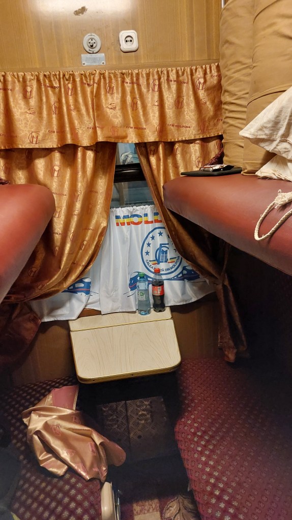Ich habe mich ziemlich lange auf diese Reise gefreut, da ich vor einiger Zeit ein Reel auf Instagram über den „letzten sowjetischen Nachtzug“ gesehen habe. Als sich die Möglichkeit ergab, in die Republik Moldau zu fahren, war also sofort klar, dass ich diesen Zug nehmen muss. Das Abteil sieht genauso aus, wie ich es mir vorgestellt habe und versprüht die Art von Flair, auf die ich mich gefreut habe. Ich mache innerlich Luftsprünge.
